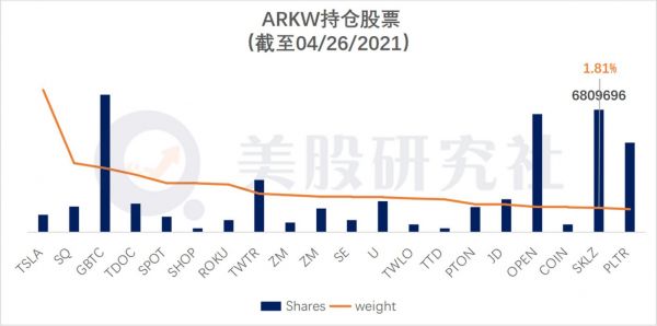 木头姐会把有大幅度创新,能大幅度改变生活方式的科技公司股票,加入到ARKW基金股票池中,木头姐也会给公司较长的时间证明自己的创新能力。目前,ARKW仓位最重的是特斯拉,第二是Square,Skillz的仓位比重为1.81%,排名第19。