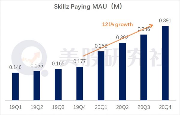 从用户数据来看,Skillz的用户数量虽然没有明显增长,但付费和活跃用户才是Skillz增长的动力。Q4数据上,Skillz的日活付费用户同比增长121%。