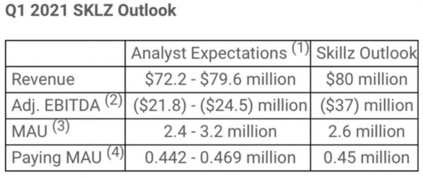 据Skillz研究统计预测的数据,在移动设备激增的推动下,到2025年移动游戏市场将达到1610亿美元,行业性的利好使公司对经营保有信心。三月底公司对外宣布了今年Q1的业绩展望,制定的目标也是高于分析师的预期。