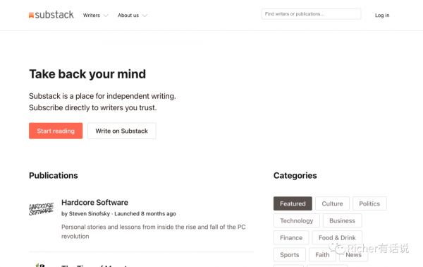 Substack主页非常简洁直接