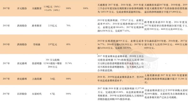另外一家是依靠建筑装饰业务起家的洪涛股份,在 2015 年 3 月以 2.35 亿元收购跨考教育 70% 股权,9 月份,又以 2.98 亿元收购学尔森 85% 股份开始进驻职业教育领域。据统计,目前这两家标的都尚未实现对赌业务。