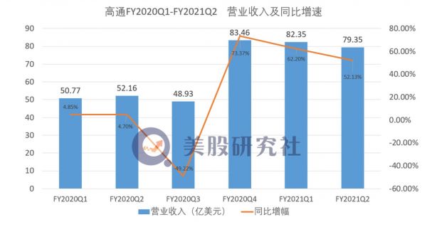 本季度,高通实现营收79.35亿美元,同比增长52.13%,受益于全球手机智能手机需求量持续复苏,高通连续3个季度营收保持高速增长,疫情对手机芯片需求的影响已经减弱。