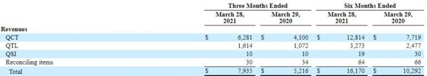 北京时间4月29日,高通发布了2021财年第二季度财报,数据显示本季度高通实现营收79.35亿美元,同比增长52.13%,净利润17.62亿美元,同比增长276.50%。