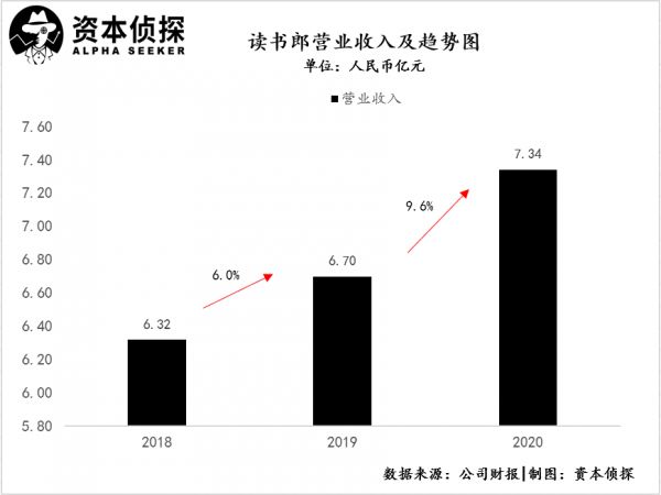 招股书显示,2018年至2020年,读书郎收入分别为6.32亿元、6.70亿元和7.34亿元,对应增速分别为6%和9.6%。其中,智能教育平板业务为读书郎的主要营收来源,这部分业务包括硬件设备以及平板内置的教育内容和服务。
