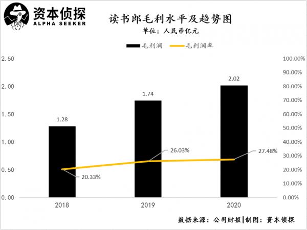 值得注意的是,相比销售及经销开支,2018年至2020年读书郎的研发投入不算高,其2020年研发费用率与2019年相比还降低了1.3个百分点。