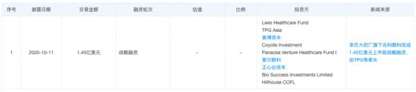 天眼查数据显示,在IPO之前,兆科眼科曾进行过一轮1.45亿美元的战略融资,投资方包括爱尔眼科、高瓴资本、TPG、正心谷资本等知名资方。