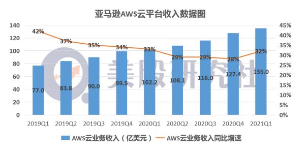 作为亚马逊最重要的营收驱动力,财报显示,Q1亚马逊aws净销售额135.03亿美元,同比增长32%。得益于北美和国际市场的零售利润率均有显著改善,亚马逊云业务AWS利润率强劲反弹至31%。
