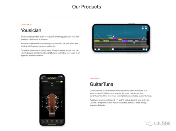 Yousician是一个学习和播放音乐的互动平台。有两款软件产品,音乐教育应用程序Yousician和吉他调音应用程序GuitarTuna。两款软件月活人数达2200万。