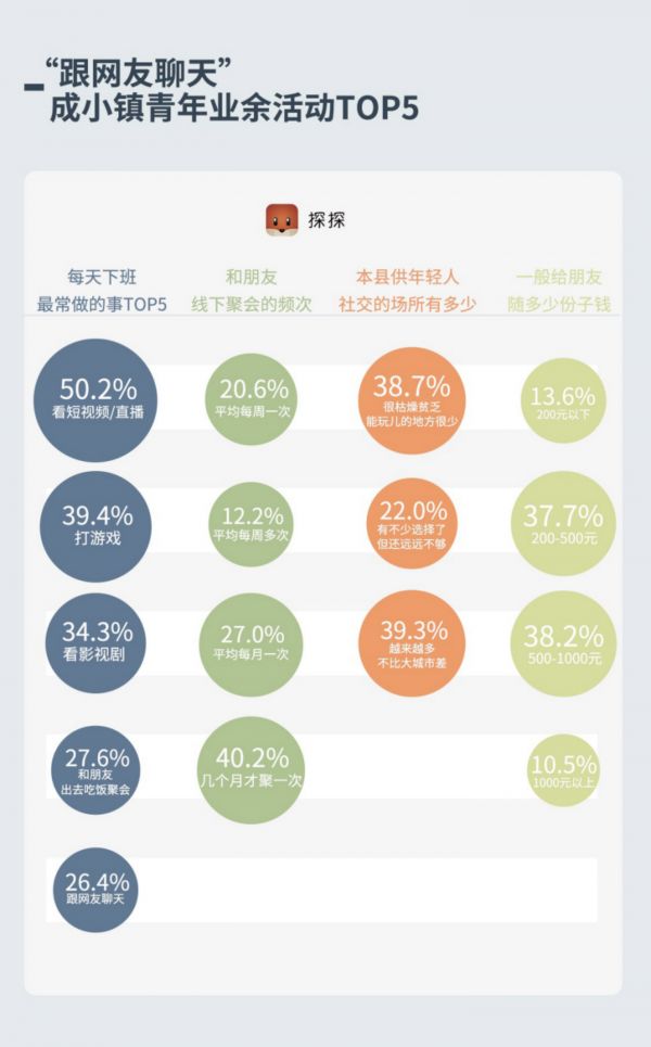 中国社会科学院新闻与传播研究所助理研究员孙萍表示,跟大城市相比,小县城保留着浓厚的熟人社会色彩,血缘、地缘、工作人脉,构成最主要的社交网络,而由兴趣、价值观等主导的更具现代都市色彩的“趣缘”关系相对薄弱,在线社交的发展对于丰富县城年轻人的人际网络有重要价值。