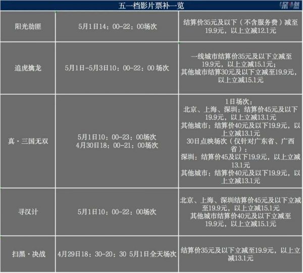 以往为了吸引观众购票,片方会先拿出一部分资金请大家看电影,19.9元等特惠电影票价诞生。这一次,《阳光劫匪》《追虎擒龙》《扫黑·决战》《真·三国无双》《寻汉计》五部影片,都开启了票补形式。