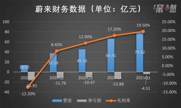 去年,蔚来坐了一个惊险刺激的过山车,今年,蔚来业绩逐渐稳了——最近第10万辆车正式下线,在国内造车新势力品牌中,算是首家解锁了“十万台”关卡。最新发布的2021年第一季度财报显示,蔚来一季度营收79.82亿元,同比增长481.8%,毛利率提高到19.5%,亏损收窄至4.51亿元。