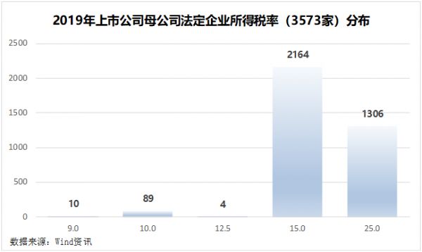 因为2020年年报数据还不全,我们采用了2019年年报的数据,在3573家上市公司中,大部分上市公司的税率都落在15%和25%两档上,其中15%最多,约占三分之二。
