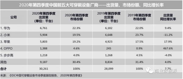 至于智能音频领域,OPPO依靠其音乐基因和合适的产品价格一定程度上为其扳回一城。IDC《中国可穿戴设备市场季度跟踪报告》数据指出,2020年第四季度,OPPO可穿戴产品成功“上位”,成为中国第四大可穿戴设备厂商,市场份额为4.6%,手环产品和W系列蓝牙耳机为其奠定了重要基础,强势的线下渠道体系也成为其出货量的有力支撑。