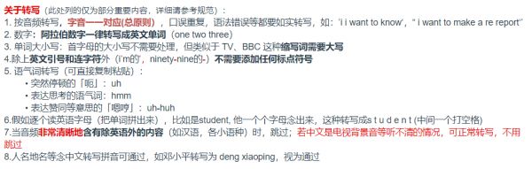 相比于数据标注、采集方面的工作,数据转写的门槛稍微高些。所谓的数据转写,主要是各种语言转译工作,比如,在有道众包的少儿英语段音频转写里,要求口误重复、语法错误等如实转写,这对于答题者的英语水平要求不低。