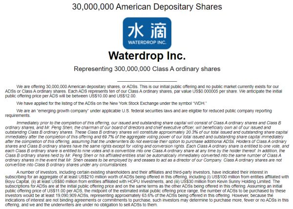 水滴公司将于5月7日(明日)正式登陆纽交所,据此前更新后招股书显示,水滴将公开发行30,000,000股ADS,价格区间为10-12美元。发行比例7.6%,预计初始募资额约4亿美元。