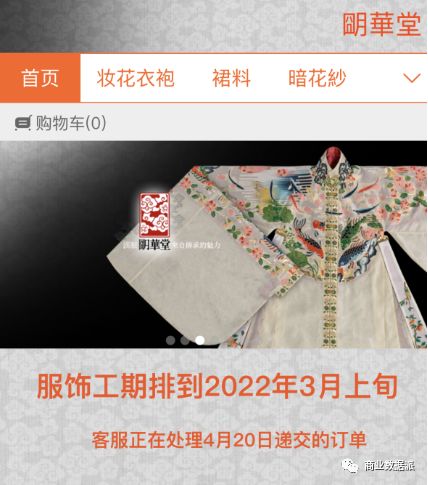 创立于2007年的高端品牌“明华堂”就是专注于高端定制化手工制作的受益者,其商品套装价格区间为5000-10000元,价格昂贵,但因为其品牌效应和品质保证,其官网显示订单服饰工期已经排至2022年3月份(截止2021年4月22日)。