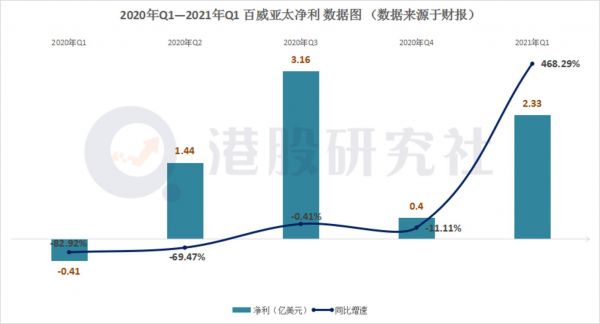 财报显示,2021年一季度净利润达到2.33亿元,同比2020年一季度增长468.29%,本季度的基本每股收益达到1.79美分/股,超出市场以及分析师们的盈利预期。