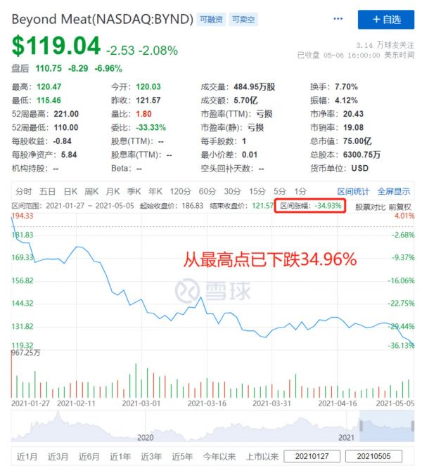 然而,行业热闹纷呈的背后,人造肉明星股Beyond Meat却未能令资本持续兴奋,业绩亏损持续放大,股价至最高点已下跌34.96%。北京时间5月7日,Beyond Meat对外发布新一季度财报。