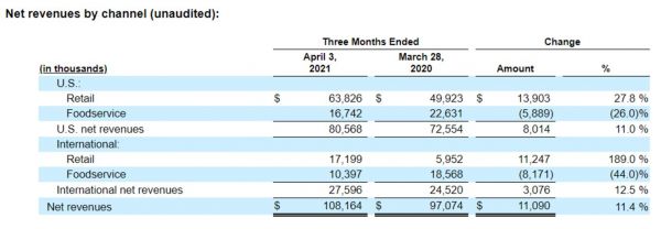 加之美国本土的疫情一直得不到根本性地控制,使得Beyond Meat的大本营美国本土市场增长乏力,零售终端的需求始终无法恢复到疫情前的繁荣与增长。