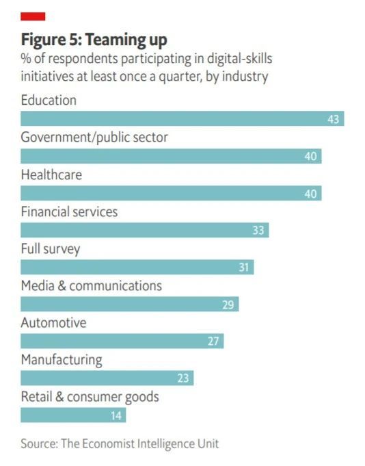 图5:零售业是最不可能「组队」进行技能培养的领域之一,与教育行业完全相反。