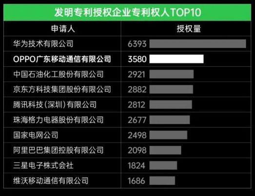 根据IncoPat发布的《2020 年公告发明授权专利年报》显示,在 2020 年国家知识产权局公告的授权专利中,OPPO以3580件位列企业专利权人第二。截止2020年12月31日,OPPO 全球申请专利数量超过 61000 件,其中发明专利申请数量超过 54000 件,占比达 89%。