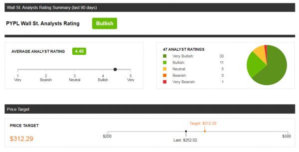 在财报发布后,华尔街主流分析师对PayPal的评级均有明显提升,30位分析师给出了强买入评级,这说明PayPal无论是现有业务的地位,还是处于发展中的服务都被市场所看好。