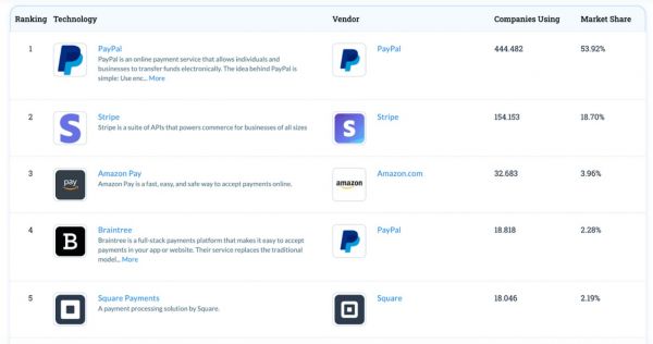 美股研究社认为,两者的发展路线已经透露了各自的展望,也解释了市场预期为何相差较大。在Datanyze对海外支付市场的统计中,PayPal拥有53.92%的市场份额,为近50万家公司提供服务,Square排名第五,在全球市场仅占2.19%。