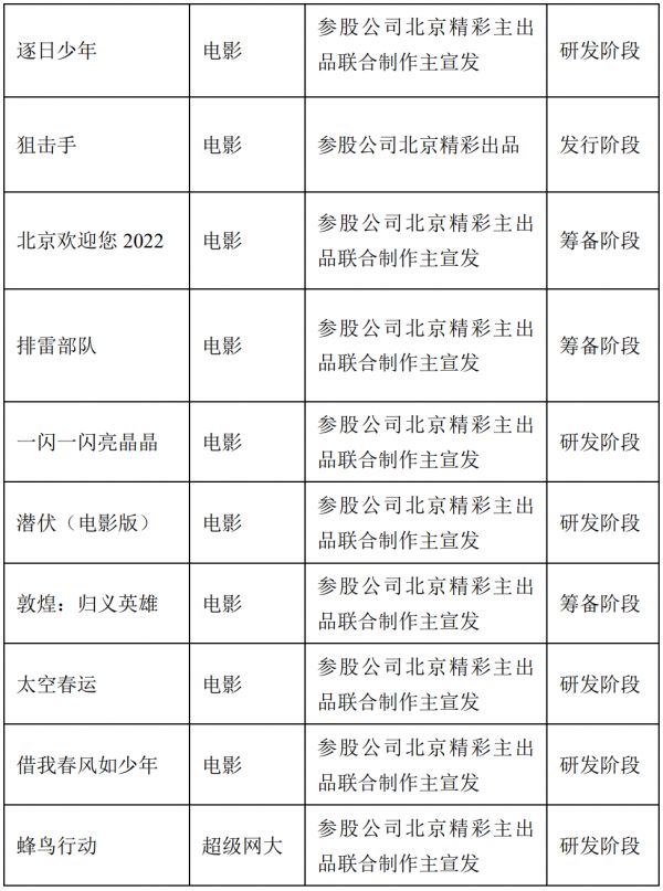 剧集业务方面,在行业上游主创价格、剧集播出价格回归相对理性阶段后,坚持以精品剧、系列剧为创作核心,强化预售体系以控制项目风险,提高精细化制片管理能力以提升项目毛利,稳步扩大剧集产能,扩张市场份额。20部剧集的拍摄计划较往年大幅增加,现实大剧多,系列剧有新意。众多作品与行业内一线导演余庆、傅东育、徐纪周,编剧高满堂、张巍等合作,展现出公司盘活行业内头部人才资源的优势。另外,《火星孤儿》等带有科幻元素的创新剧目也瞄准内容市场蓝海,或带来领衔市场、填补空白的效应。