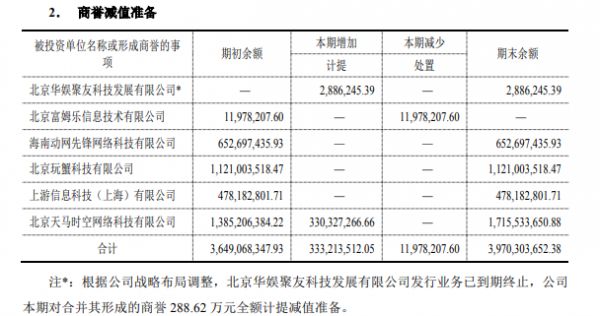 根据财报,掌趣科技因并购动网先锋、上游信息、玩蟹科技、天马时空等公司形成商誉55.95亿元,2020年针对天马时空计提3.3亿元商誉减值,累计就上述公司共计提39.7亿元商誉减值,期末商誉账面价值16.13亿元。
