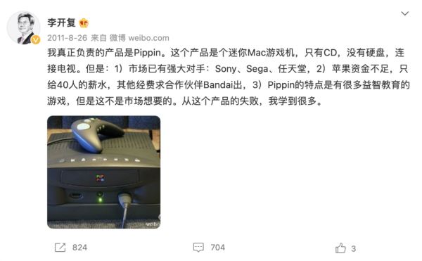 1997年乔布斯回归后,立马砍掉了Pippin的产品线。比较有趣的是,Pippin的项目负责人是李开复。