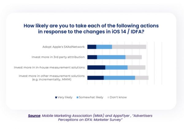 近日,苹果iOS14.5终于迎来正式版,意味着其隐私新政已经启动实施。根据移动营销联盟MMA与AppsFlyer调查,多数营销人还处于观望中,也有多数营销人员可能采取其他归因方案。究竟苹果最新隐私政策的实施对移动应用归因带来哪些影响?是否有相应解决策略?