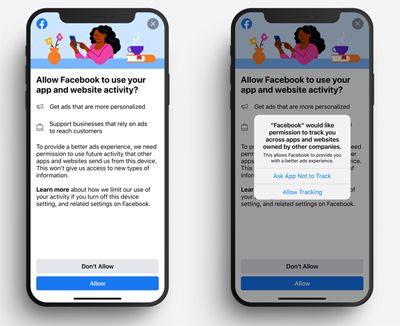 Facebook也于年初逐步向用户推送追踪提醒,并将其提醒控制在ATT弹窗之前以最大程度获取用户授权。