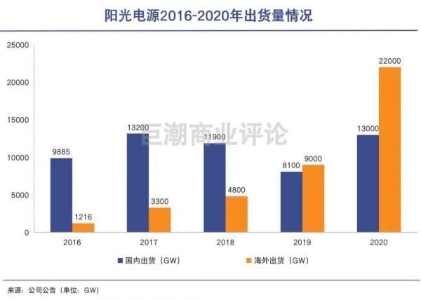 财报数据显示,2020年阳光电源海外地区(含港澳台地区)的销售收入为66.02亿元,同比增长101.77%;而大陆销售收入126.84亿元,同比仅增长30.34%。