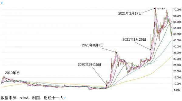 2021年1月25日,恒大汽车股价开始起飞,至2月17日,股价上冲至72.25港元。如果腾讯等承配人此时卖出股票,可以赚取超过2倍的利润。
