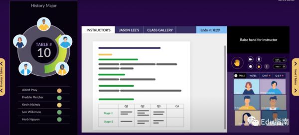 其他还包括:灵活的表格组、学生笔记、问答、聊天功能以及学生-教师反馈循环等。在上课期间和下课后,学生通过小组等形式,与他们的同龄人和他们的老师互动,以及在课程之间实时地协作。