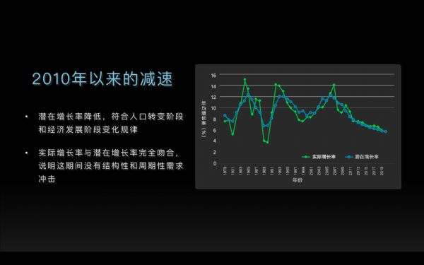 劳动力从低生产率部门向高生产率部门不断转移,调整产业结构赢得生产率的提高,是经济学家说的“库兹涅茨过程”。现在会出现这一过程,也就是说生产率的提高速度不如原来快了。美的用10块钱的人工成本,劳动生产率提高了,但是在宏观配置的意义上,劳动生产率的提高速度减慢了。所有这些因素放在一个经济模型中,算出的结果显示潜在增长率是下降的。潜在增长率就是供给侧的因素,过去这些年我们实际增长速度的确也下降了。