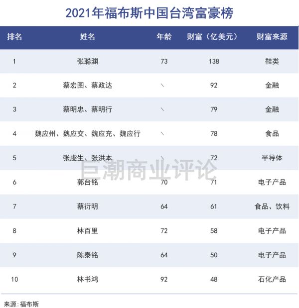但随着近几年富士康业务的衰退,郭台铭在身价上陆续被另外几位台湾富商超越。谁也没想到的是,在以各种电子、芯片等科技产业闻名的台湾商界里,新晋首富竟然出自最传统的制鞋生意,而且低调到网上连照片都少见。