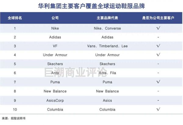 全球运动休闲鞋服市场份额前十名的公司当中,华利与其中五家建立了长期稳定的合作关系,包括Nike、VF、Columbia、Puma等。