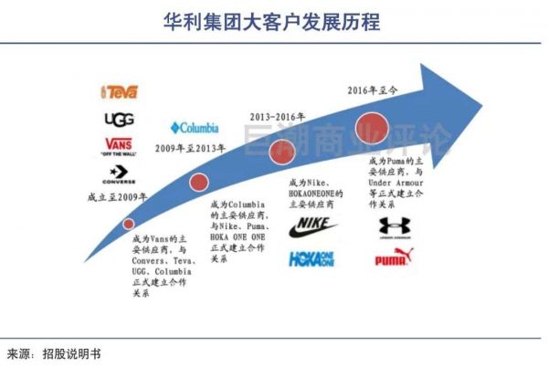 大客户模式下,开拓新的大客户对于业绩提升的影响非常显著。过去多年发展中,华利集团在2013年成为耐克主要供应商,2016年开始成为安德玛(UA)和彪马(puma)的供应商,推动了其业务的快速增长。
