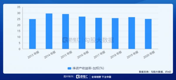 2020年实现收入为2842.21亿元,同比增长2.16%;归母净利润272.23亿元,同比增长12.44%;归母扣非净利润为246.15亿元,同比增长8.32%;加权平均净资产收益率24.95%,仅比上年-1.48%,业绩十分稳健。