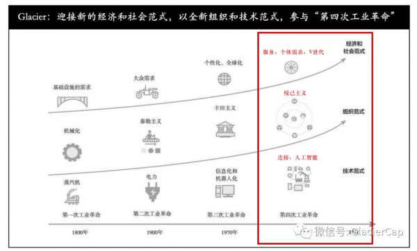 Glacier观察,历次工业革命都经历三个步骤:第一步重新定义产品,第二步重新定义产业链上、中、下游和它们的协作模式,第三步开放能力给其他工业门类。