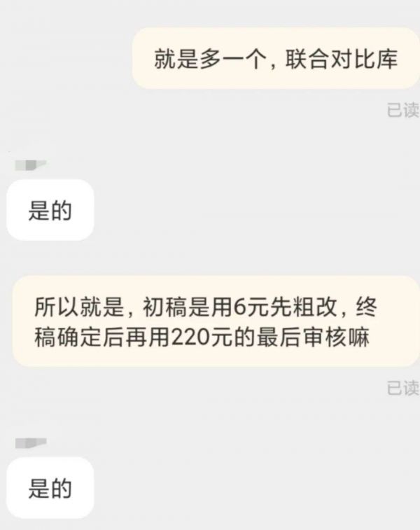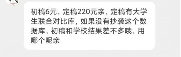 通过与该店家沟通得知,其店铺共提供2种查重服务:6元“低配版”与220元“高配版”。