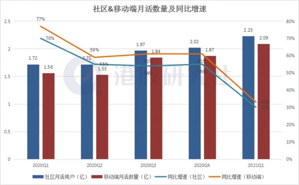 值得注意的是,尽管社区月活突破了两亿,但比起去年同期的70%的增速,第四季度的55%,B站本季度月活增速已经慢慢趋缓。