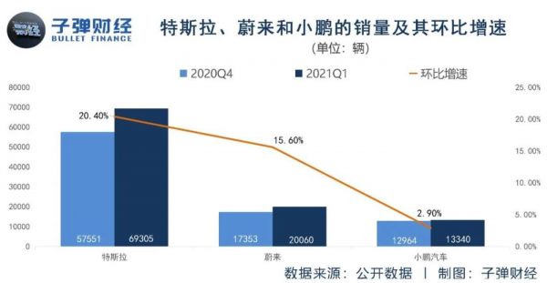不难看出,特斯拉和蔚来的销量环比增速均大于小鹏。