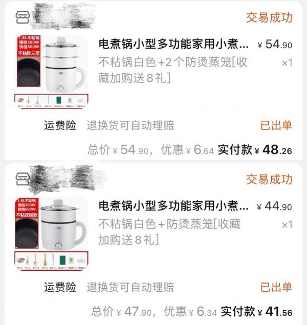 图 / 王筱筱购买电煮锅的订单截图