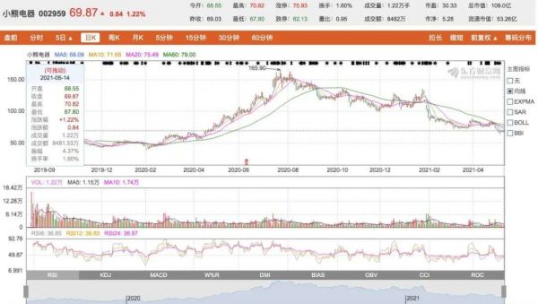 然而,2021年资本市场对小熊电器的热情却已不再,小熊电器股价一路下跌至5月14日的69.87元,与最高点时股价相比,已经“腰斩”。