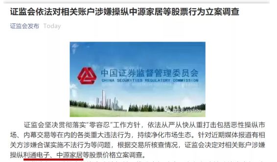 此外,还有3家券商也被卷入其中,分别是民生证券、恒泰证券、天风证券。周五(5月14日)证监会表示已启动核查程序,周日(5月16日)证监会进一步发声,依法对相关账户涉嫌操纵中源家居等股票行为立案调查。