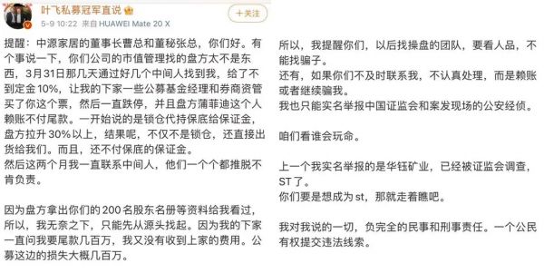 而对于事件本身,该好友表示:“中源家居一事早就知道,他们不是坑小散,没有找散户,而是找的公募,公募基金坑基民,用公募基金的资金去接货的,公募基金经理想捞钱,接货后盘方给出返点,盘方要出货,盘方从19元拉到30元,叶飞也只是赚点中介费而已,他没有参与坐庄。”