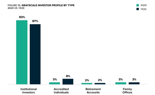 2020年灰度基金投资者机构占比近90%,图片截自于灰度公开报告