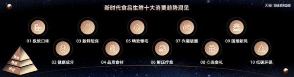 近日,在天猫举办的“全球美食盛宴”会上,发布了十大新趋势,分别为:极致口味、健康成分、新鲜短保、品质食材、精致懒宅、解压疗愈、兴趣破圈、心选食礼、国潮新风、低碳环保。